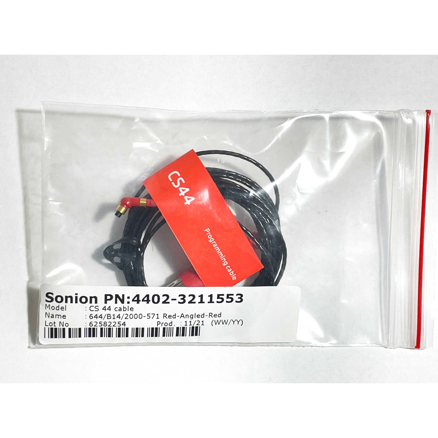 New, CS44 Hearing Aid Programming Cable (Sonion). Red Color